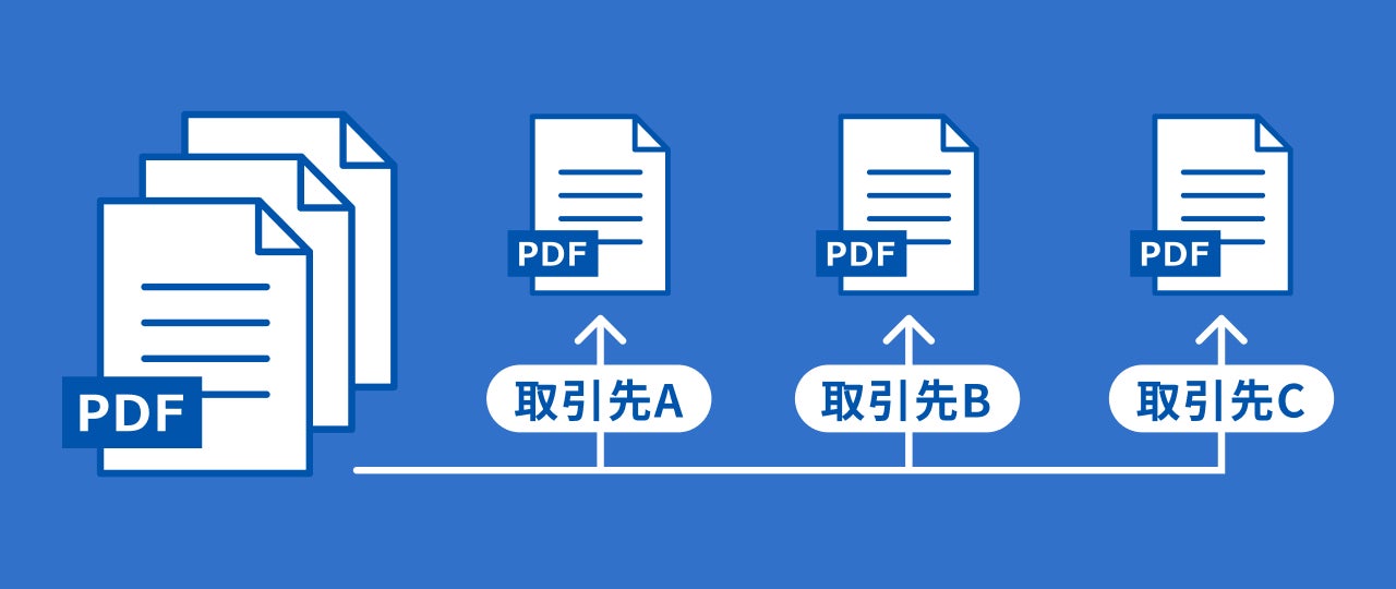 複数の取引先の請求書が1つにまとまっているPDFを、取引先ごとに分割できる機能です。