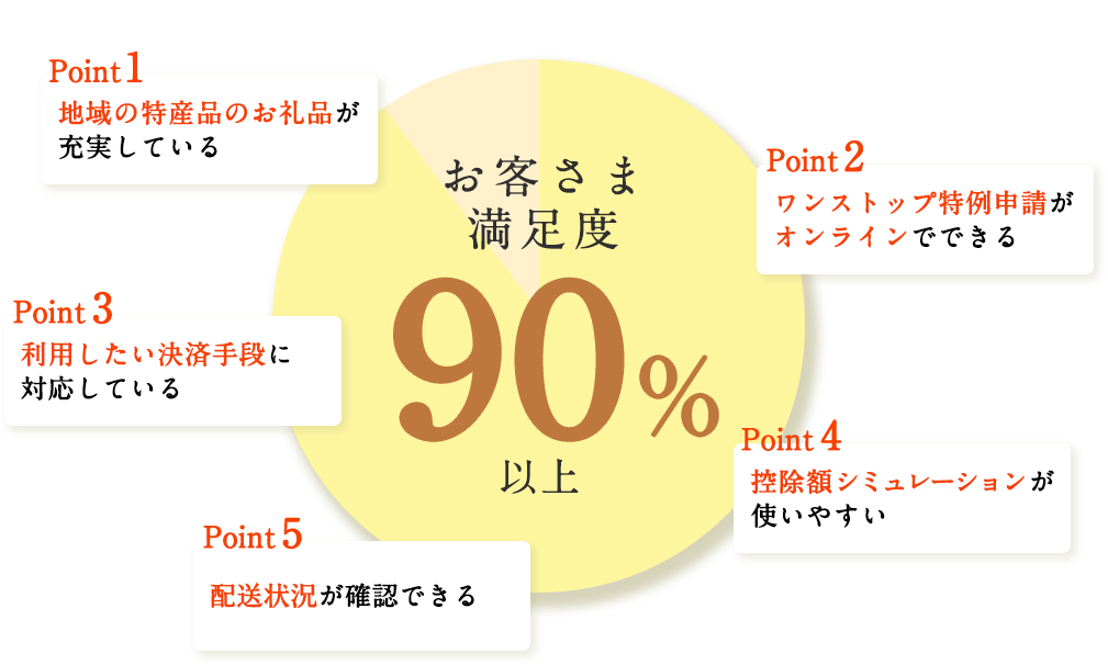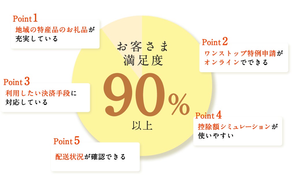 「さとふる」ユーザーを対象とした「さとふる」に対する満足度調査では、90%以上が「満足」または「やや満足」と回答しました。