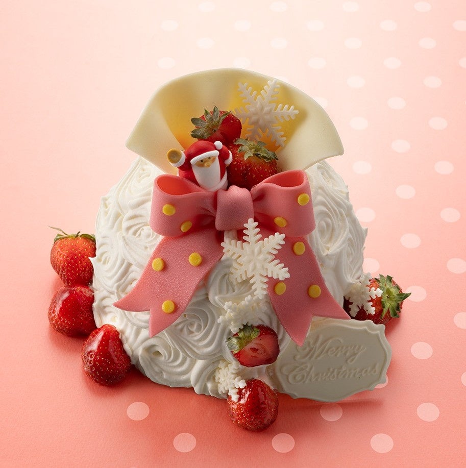 ふわふわのスポンジと口どけのよい生クリーム、爽やかなイチゴのハーモニー。大きなリボンをのせて愛らしいギフトに。