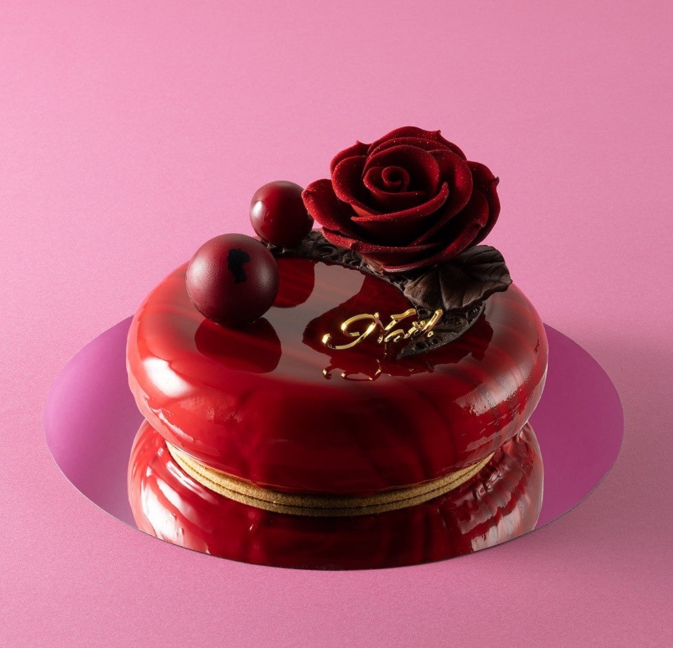 ホワイトチョコやマスカルポーネのコクと、イチゴやラズベリーの甘酸っぱさが絶妙。真紅のバラが特別なクリスマを演出します。