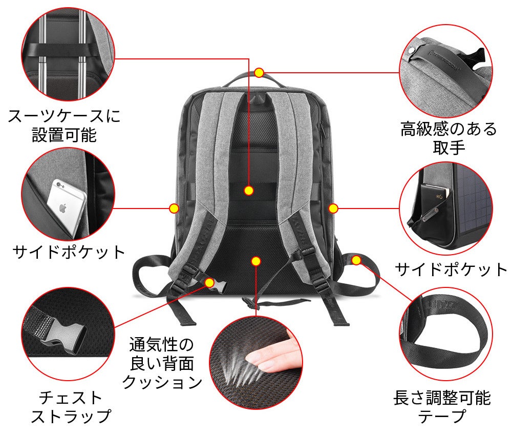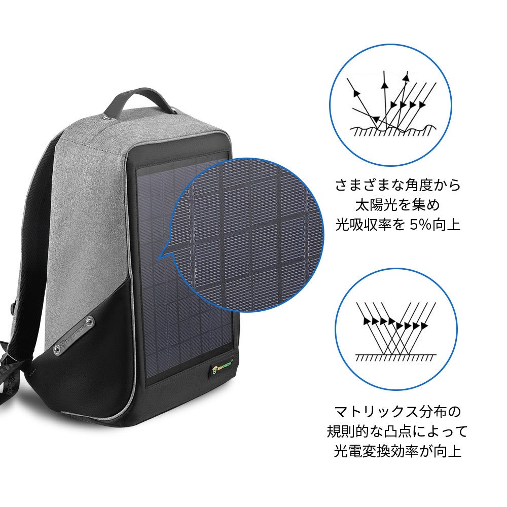 背負っているだけで、いつの間にかモバイル機器の充電ができています。