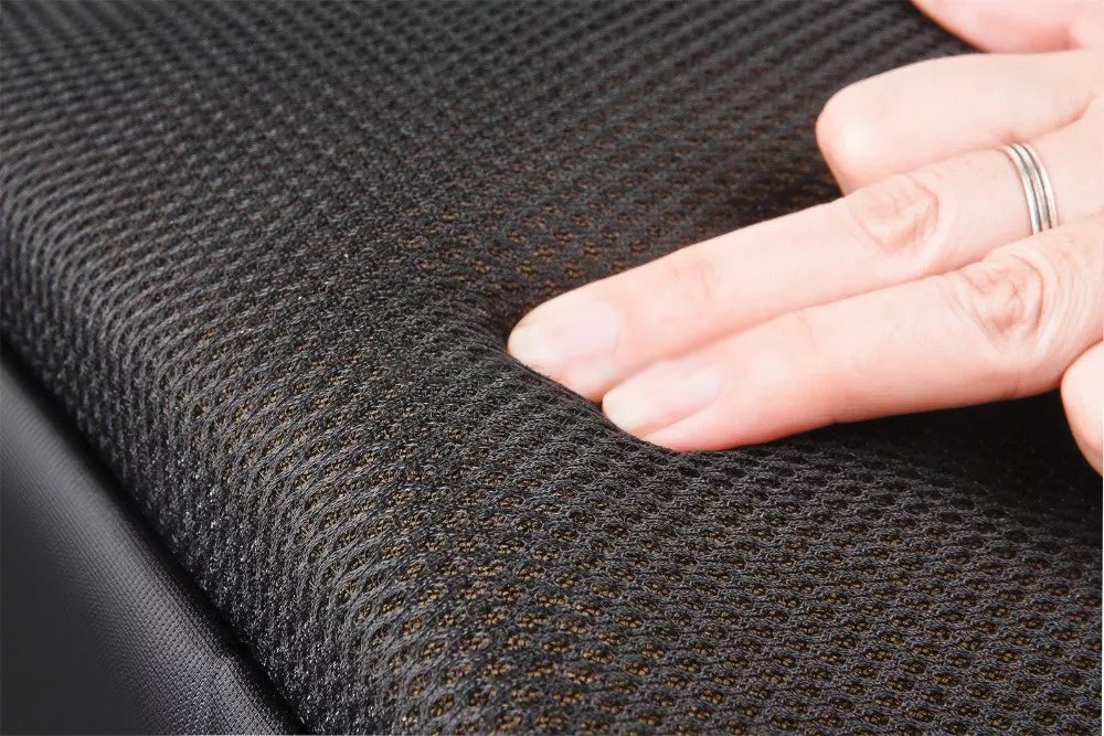 背中にあたる部分や肩紐にはクッション素材を内蔵し、通気性の高いメッシュを採用しています。