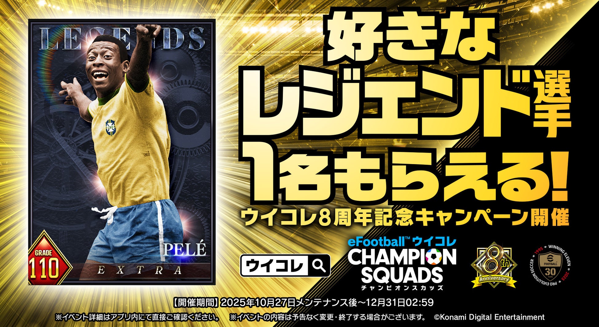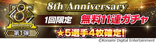 株式会社コナミデジタルエンタテインメントは、モバイルゲーム『eFootball™ ウイコレ CHAMPION SQUADS』(以下、『ウイコレ』)の配信開始8周年を記念したキャンペーン“8th Anniversary FEST”を開始したことをお知らせします。