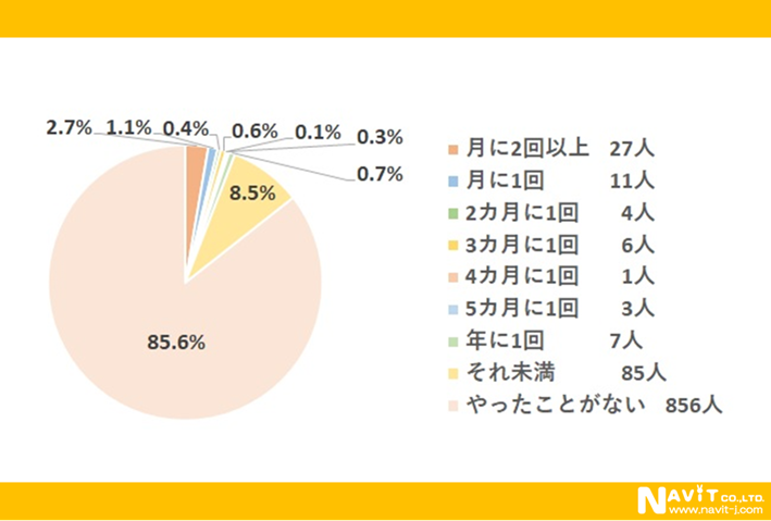頻度は最も多い人でも「月に2回以上」で27人
