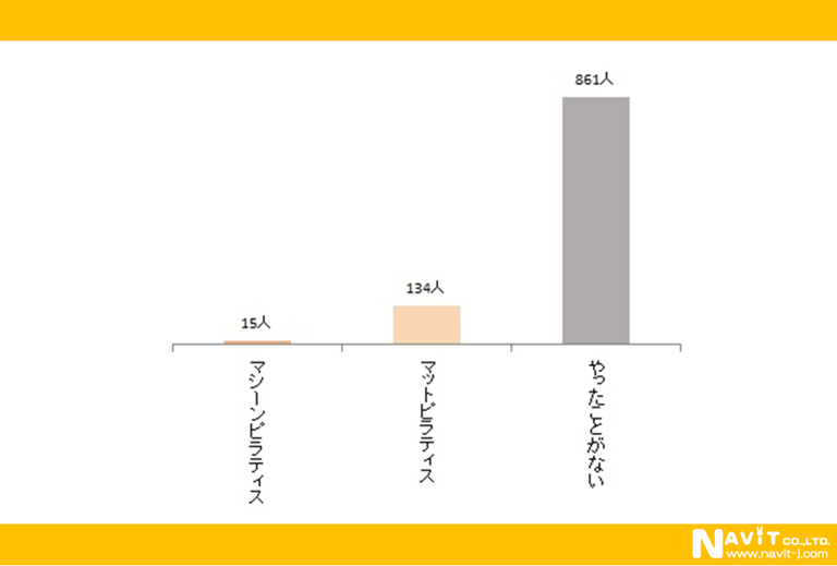 経験者は「マシーンピラティス」の15人と「マットピラティス」が134人の合計149人にとどまっています。