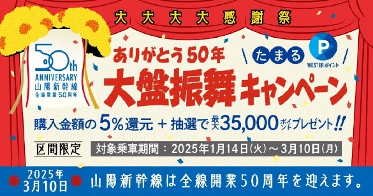 山陽新幹線全線開業50周年記念企画「ありがとう50年、ポイント大盤振舞キャンペーン」の開催について