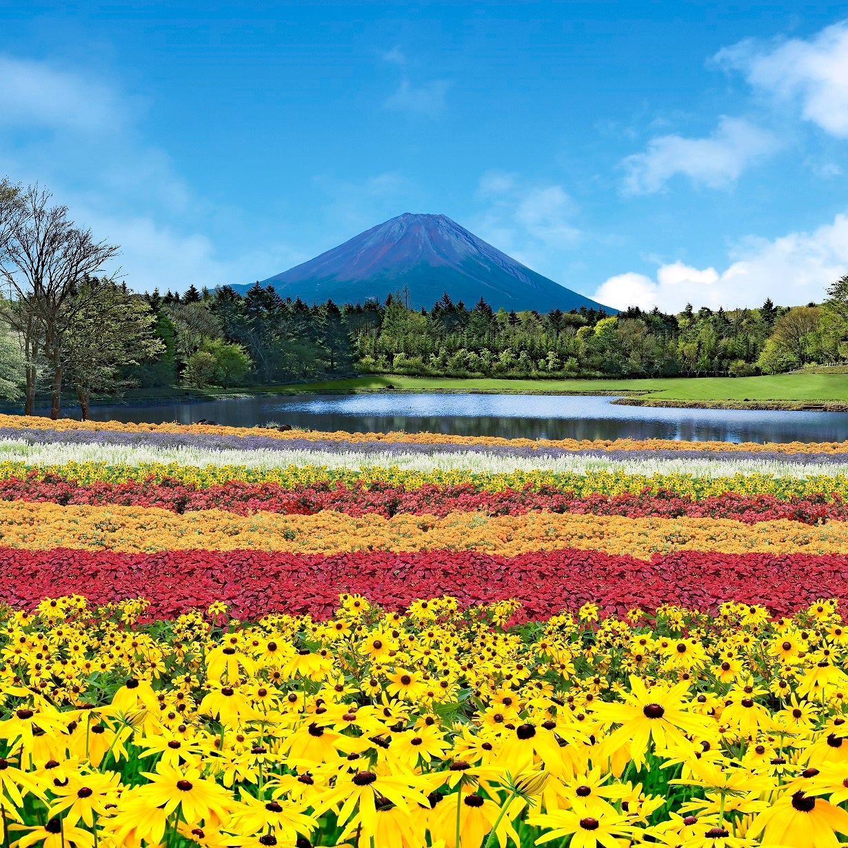 富士本栖湖リゾートでは、ジニアやサルビア、ルドベキアなど10 種類のカラフルな花々と緑が美しい夏の富士山との共演が楽しめる「虹の花まつり」を本年の夏より初開催いたします。春の「富士芝桜まつり」とはまた違った絶景に、ぜひご注目ください。