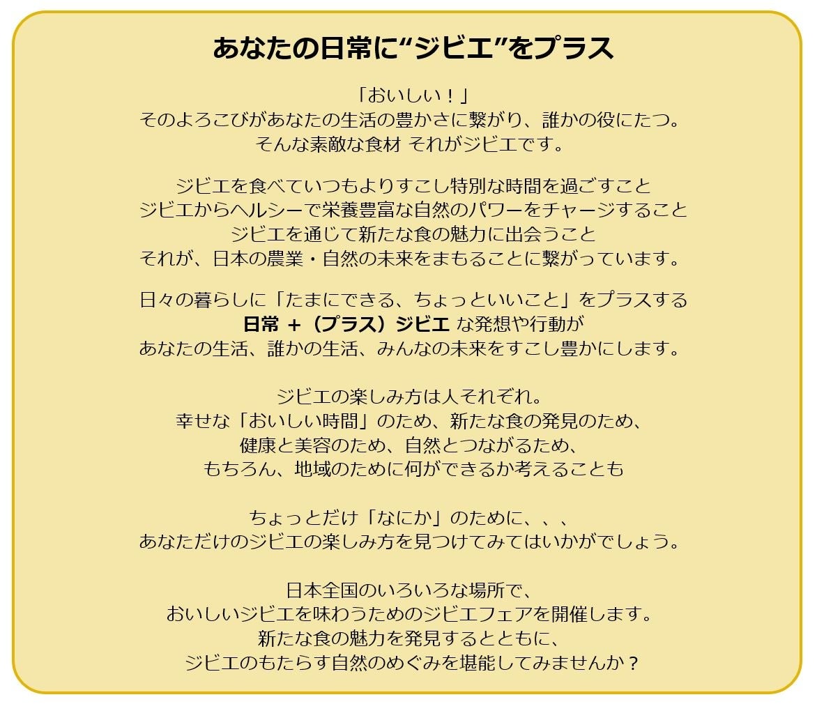 ジビエを食べることが自分自身のため、もしくは自分以外の誰かのために「ちょっとだけ役に立つ」ことを表現した「ジビ活」を本フェアの中でも紹介します。