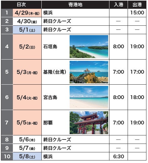 寄港地:石垣島、基隆(台湾)、宮古島、那覇