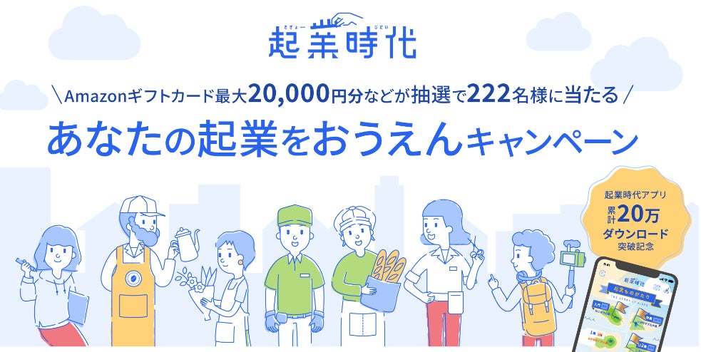 ・起業/開業の情報が詰まった起業時代のスマホアプリの20万ダウンロード突破を記念して「あなたの起業をおうえんキャンペーン」を開催します