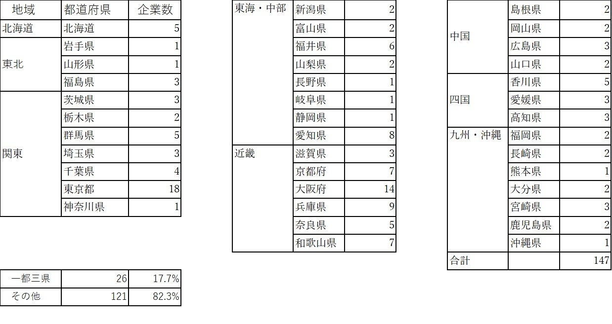 海外展開拡大を目指す日本企業 合計147社(予定)