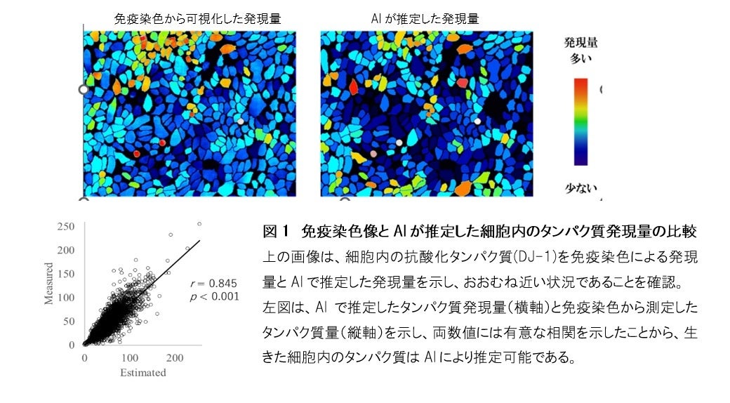 本研究は、顕微鏡撮像と機械学習によるAI技術を用い、生きたままの状態で細胞内のタンパク質発現量を推定する技術の確立を行いました。