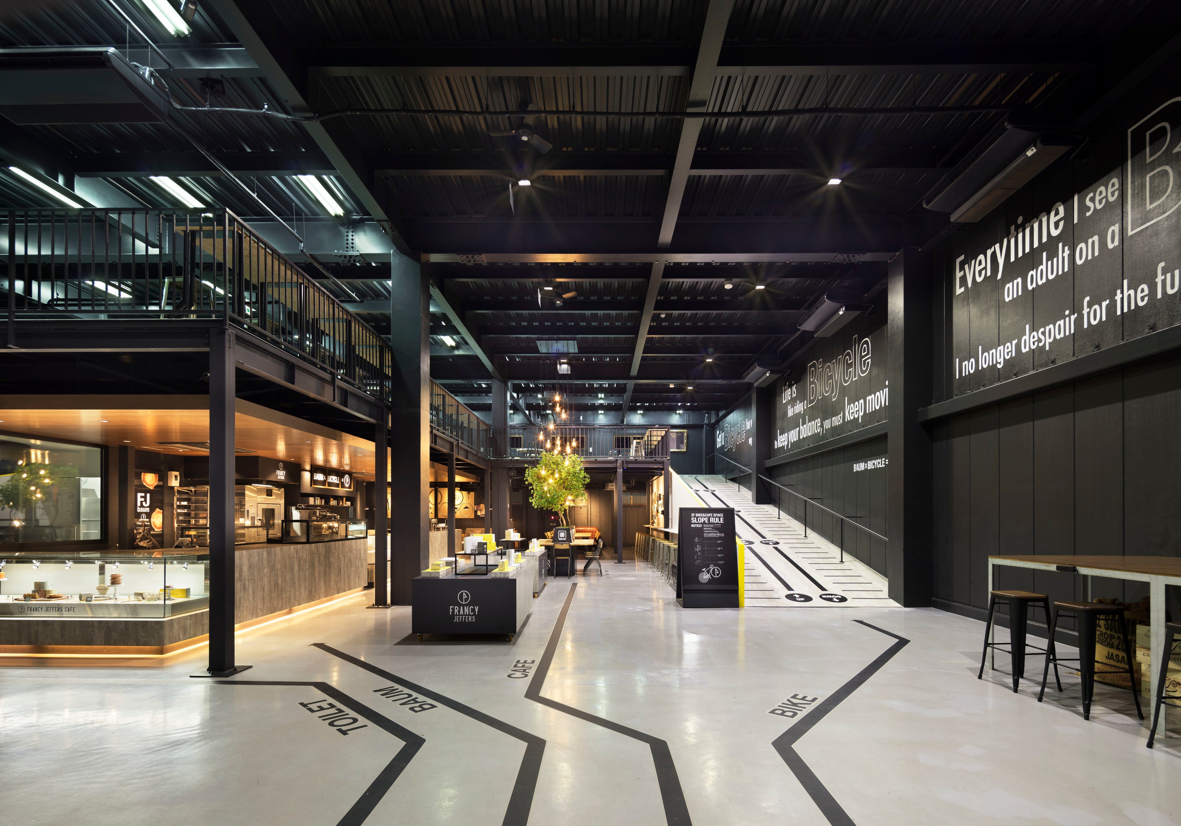 元はアパレルの倉庫をリノベーションした開放的な店内には、自転車を持ち込めるスペースもあり、十三峠越えのサイクリスト御用達。FRANCY JEFFERSはカフェを通じて健康的な衣・食・住のスタイルを提案しています。