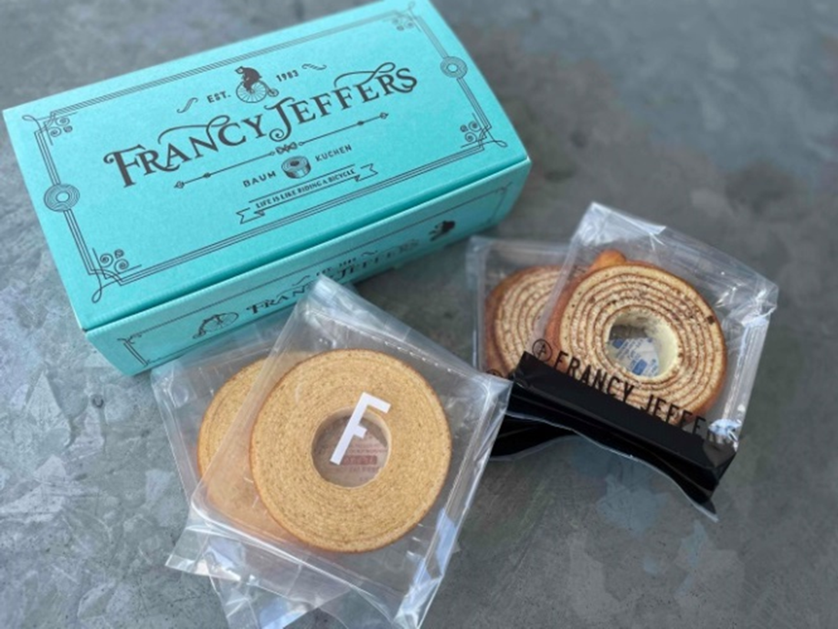 その他にも、北海道生クリーム・蜂蜜の豊かなコクとしっとりした食感が特徴の「しっとり生バウム」、発酵バターを使用した外はさっくり、中はもっちりの「もっちりバターバウム」は、じっくり15層に焼き上げ、一晩じっくりと熟成させた自家製のバウムクーヘンなど、FRANCY JEFFERS店内のファクトリーで焼き上げられた絶品の品々が並びます。