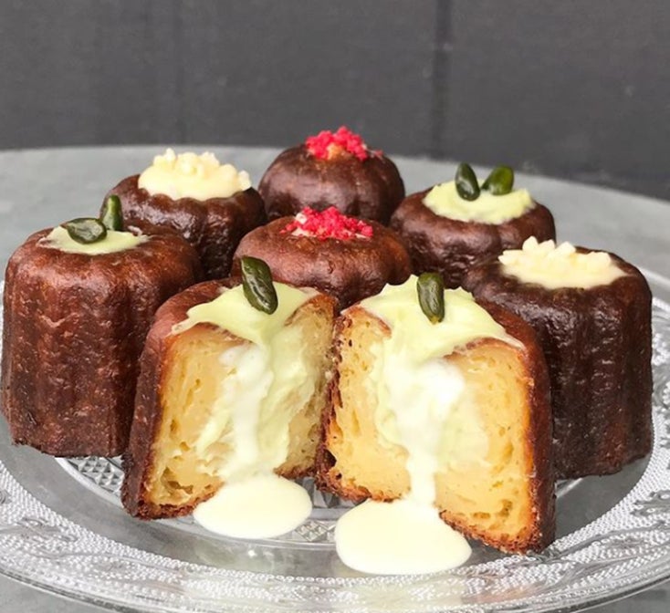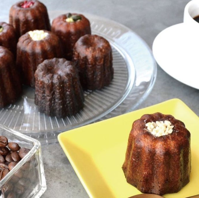 ブルボンバニラとラム酒をふんだんに使ったカヌレ生地の中に、たっぷりクリームを詰め込んだ生カヌレは、少し温めるとよりクリームのなめらか食感が楽しめ、また温めた生カヌレを半分に切った断面は、流れ落ちるクリームにビジュアル映えする一品としてお楽しみ頂けます。
