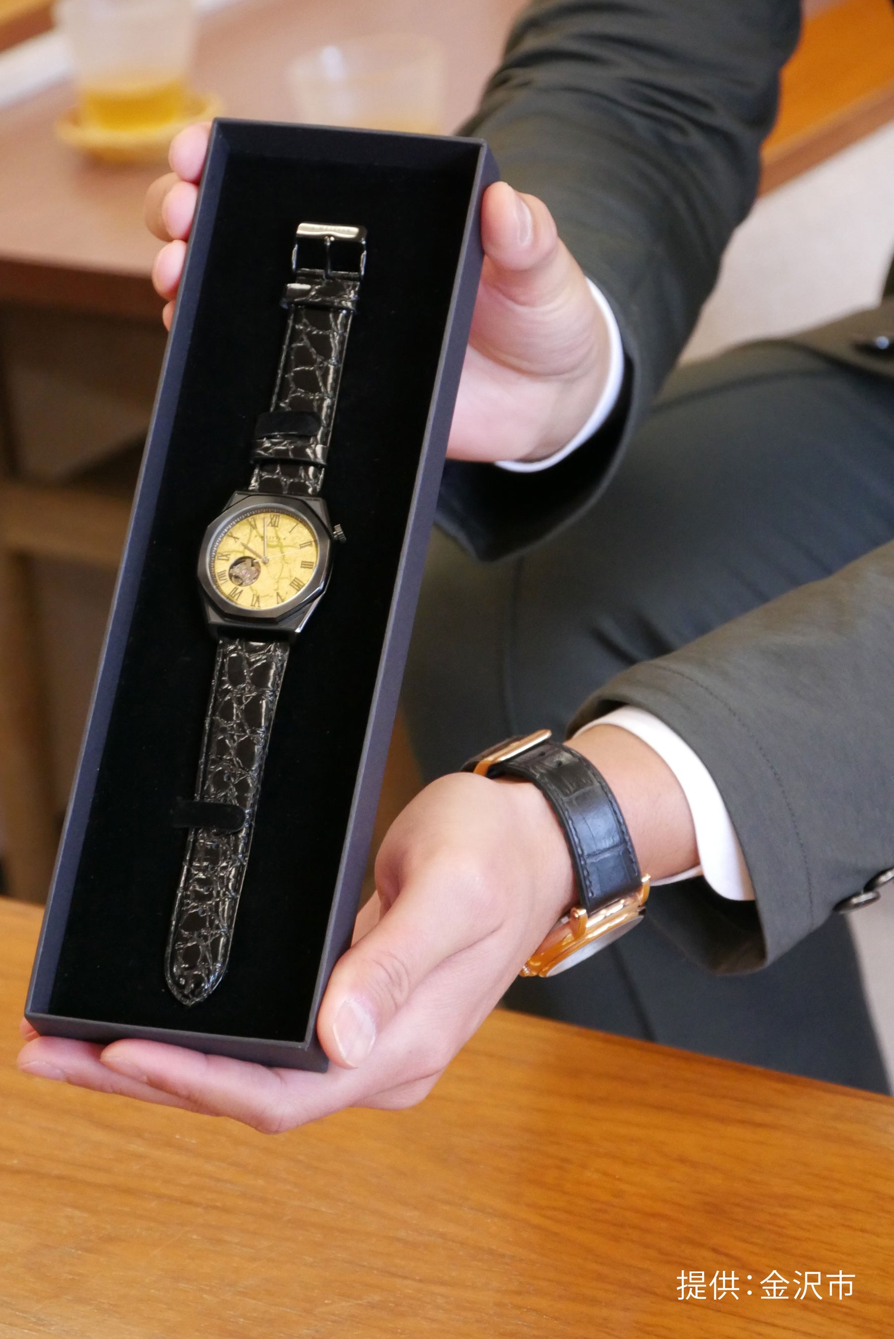 日本の伝統技術をデザインに取り入れた機械式時計ブランド『S-MEISTER(エスマイスター)』は金沢箔の『縁付金箔』を文字盤に使用した時計を作成し、企画者が金沢市長を表敬訪問し、発売を報告しました。
