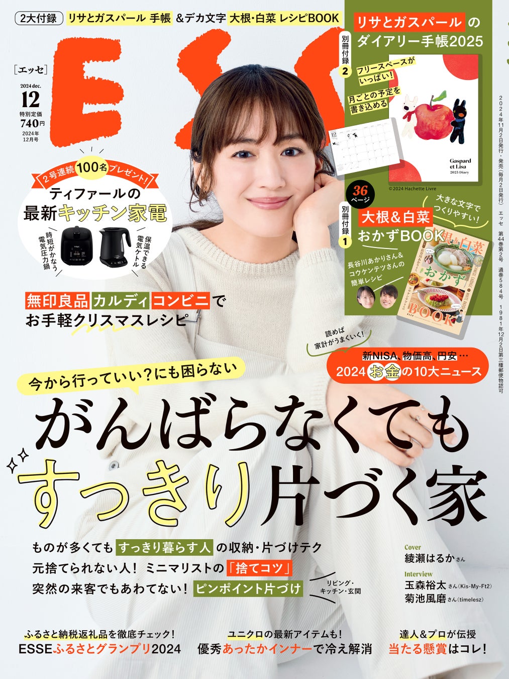 「丁寧に暮らすから毎日がハッピー!」をコンセプトに、暮らしに役立つ情報を発信する生活情報誌『ESSE』2024年12月号(扶桑社刊)発売中。