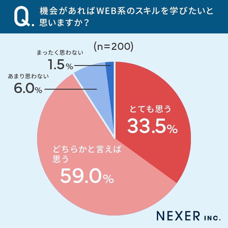 合計で9割以上とほとんどの方が、機会があればWEB系のスキルを学びたいと「思う」と回答しています。