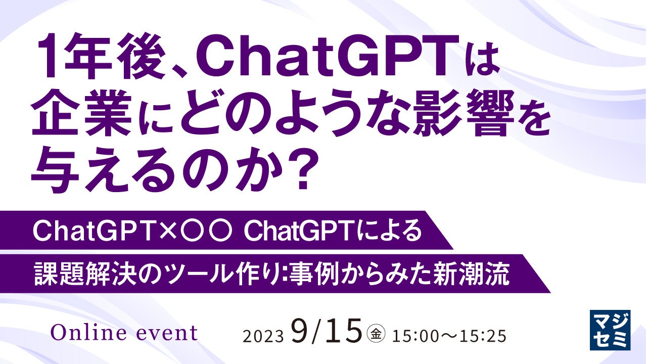 「1年後、ChatGPTは企業にどのような影響を与えるのか?」のイベント全体、及び他のセッションの情報については、以下のページから参照して下さい。