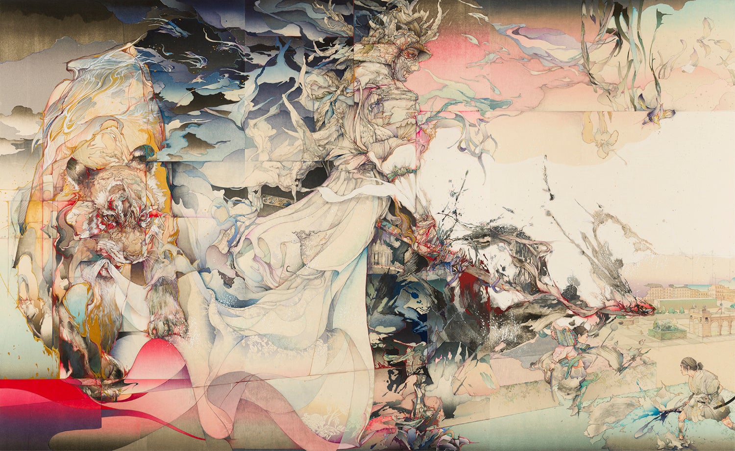 今回の展覧会は、一昨年に制作した六曲一隻屏風《黒雲妖炎龍図》の対となる新作《夢幻対峙之図》を一双屏風として初公開。また、過去の代表作ならびに近年の新作約60点を展示し、入江作品の世界観をより深くご堪能いただける内容となっております。どうぞご期待ください。