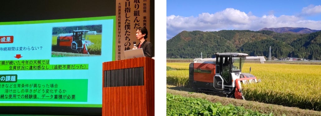 数年前から葉タバコの栽培で土にかえる植物由来の「生分解性マルチ」を使用するなど、実際に脱プラスチック農業に取り組む雲雀明徳氏(雲雀農園 代表)は、今年から取り組んだ「脱プラスチック被覆肥料で臨んだコメ作り」について講演しました。取り組むきっかけは代搔きした田んぼに大量のカエルの卵が浮かんでいることを不思議に思い調べたところ、肥料を被覆しているプラスチックの殻で、肥料にプラスチックが使用されていることを初めて知ったと話しました。プラスチック被覆肥料から硫黄被膜肥料に代えても手間や生育、費用面でも差がなく、心配していたお米の品質や収穫量にも変化がなかったことから一安心、来年以降も脱プラスチック被覆肥料で美味しいお米を作りたいと宣言。また、今回実証した結果から脱プラスチック農業に取り組む農家が増えるように広めたい、農業生産から海洋ごみを削減したいと述べました。雲雀さんのような脱プラ農業に取り組む農家が一人でも多く、米づくりが盛んな秋田から脱プラスチック被覆肥料を使用した米づくりが全国に広がり、農業生産から発生する海洋プラスチックごみ削減につながることを期待したいと思います。