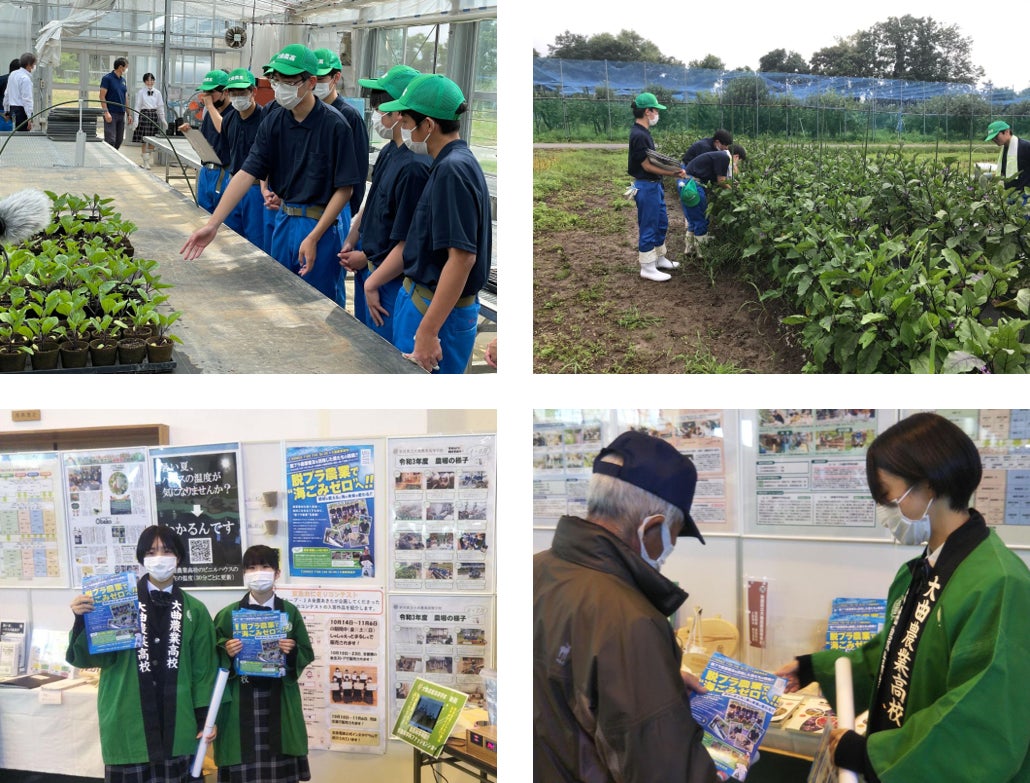 また、別会場の大曲農業高校の展示コーナーでは生徒が来場者に今回取り組んだ脱プラスチック農業の実践結果のチラシを配布して丁寧に説明をしました。