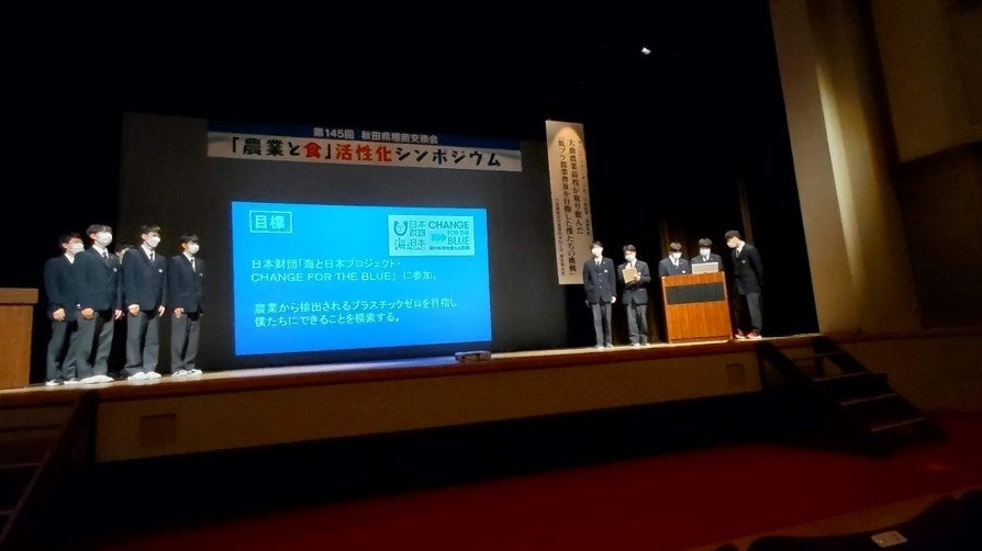 CHANGE FOR THE BLUE in秋田県実行委員会は、10月31日(月)に大曲農業高校が実践した脱プラスチック農業【脱プラ農業普及を目指した僕たちの挑戦】の事例発表を大仙市で開催の第145回秋田県種苗交換会「農業と食」活性化シンポジウム内で行いました。このイベントは、日本財団が推進する海洋ごみ対策プロジェクト「海と日本プロジェクト・CHANGE FOR THE BLUE」の一環で開催するものです。