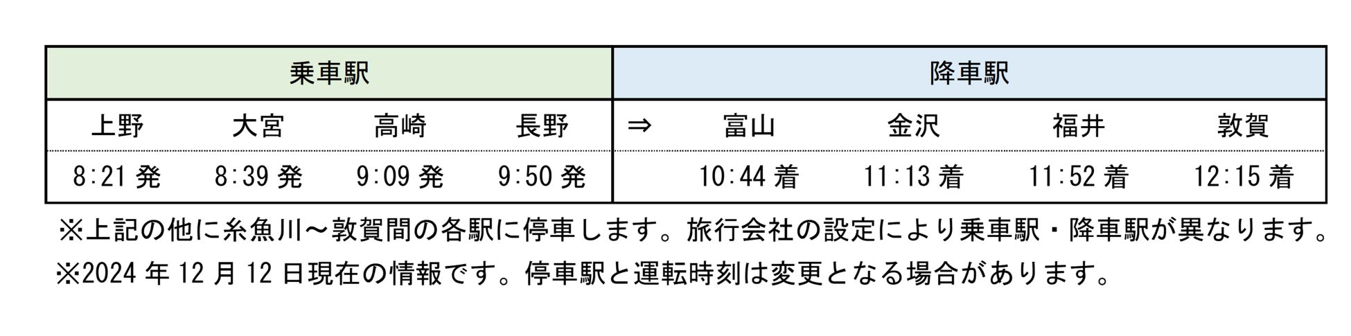 (2)運転区間:上野駅(8:21発)⇒敦賀駅(12:15着) ※片道のみの運転となります。