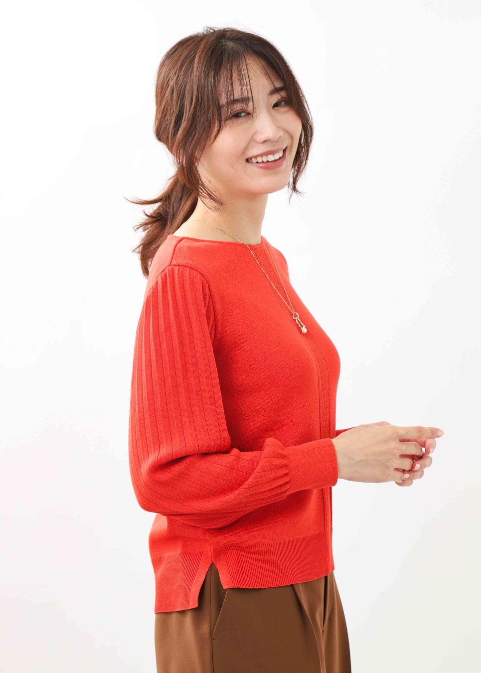 今シーズンリフレクトがおすすめする「マイカラニット+」は、秋冬のおしゃれを華やかに演出するデザインでプリーツ形状の袖や編み柄にこだわり、一枚着としてはもちろん、ジャケットやコートインとしても活躍してくれるニットです。19色のカラーとサイズ展開の豊富さもポイント。