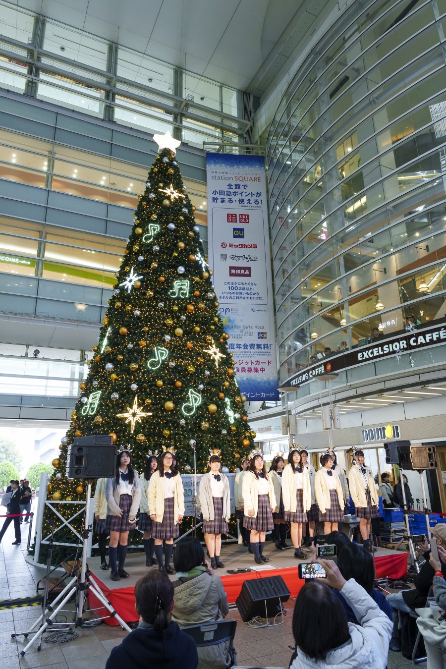 クリスマスツリーの点灯式に、相模女子大学中学部・高等部の生徒が 参加し、演奏や合唱を行います