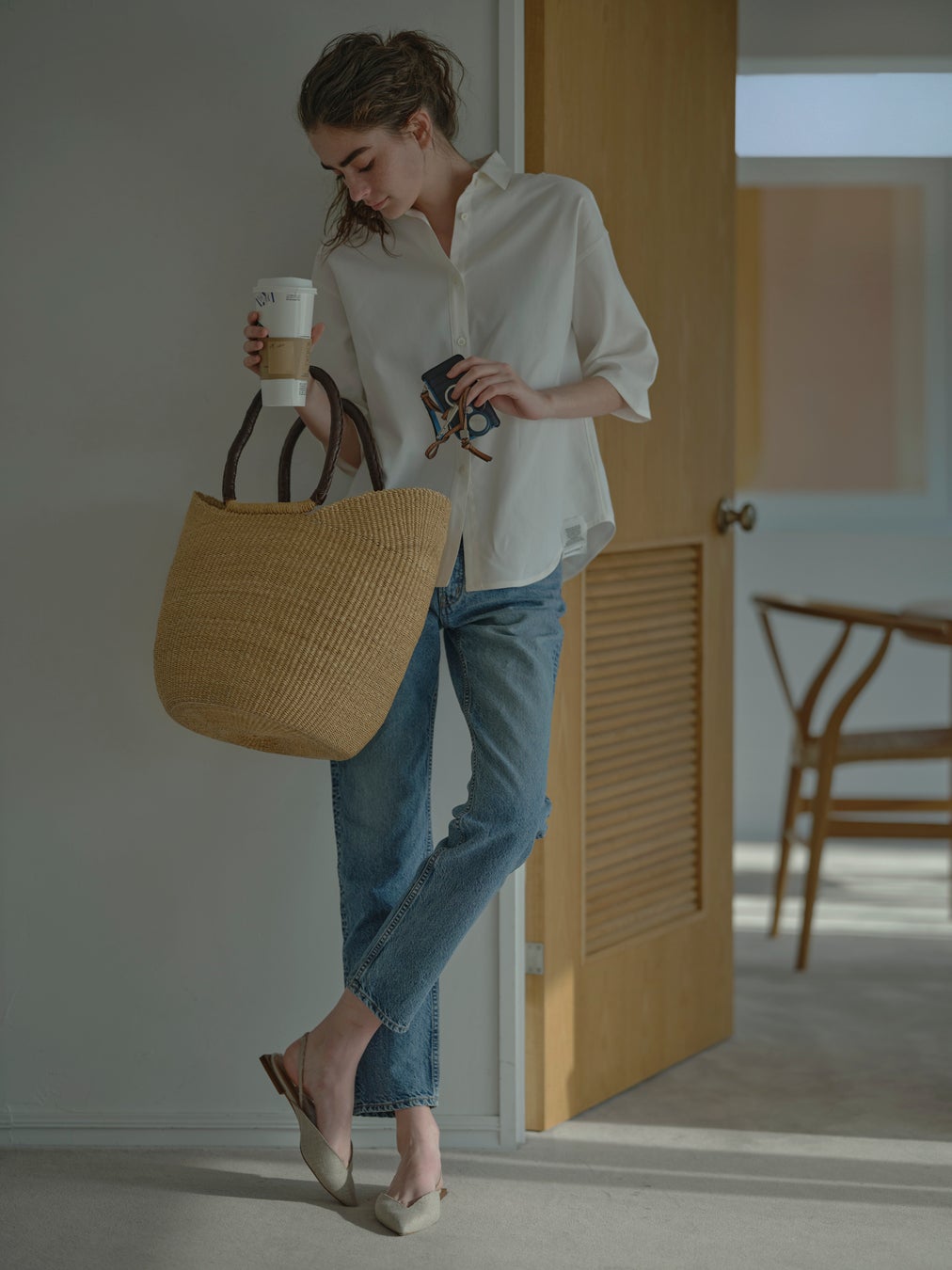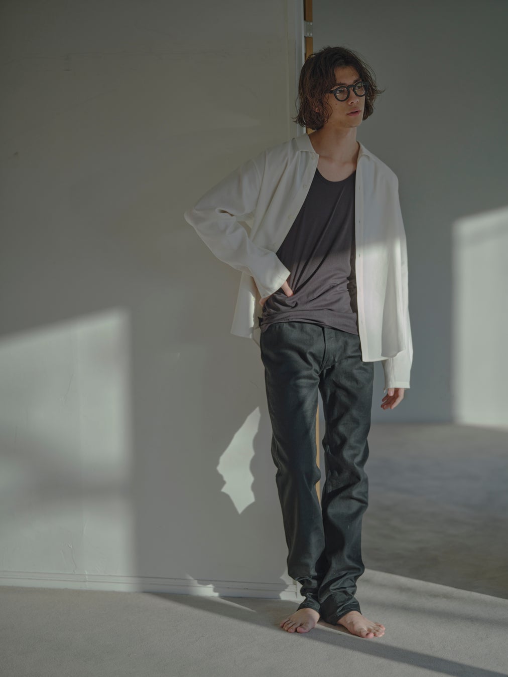 ユニバーサルデザインにこだわり、無駄をそぎ落としたシンプルなシルエットを採用。流行に左右されない長く愛せる一着に。ユーズドライクな洗いをかけたインディゴと、日本“漆黒”という概念からインスピレーションを受けたブラックに加え、洗いや加工を加えていない生デニム(ノンウォッシュデニム)を展開。着るたびに馴染んでいく”育てるデニム”で、自分だけの一枚をお楽しみください。