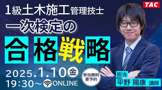 年が明けると一次検定を意識しはじめる方も多いのではないでしょうか。 TACでは2月から早期講義、3月から本講義がスタートしますが、開講前にガイダンスとして最新試験の総括とそれを踏まえた具体的な学習法をお話します。