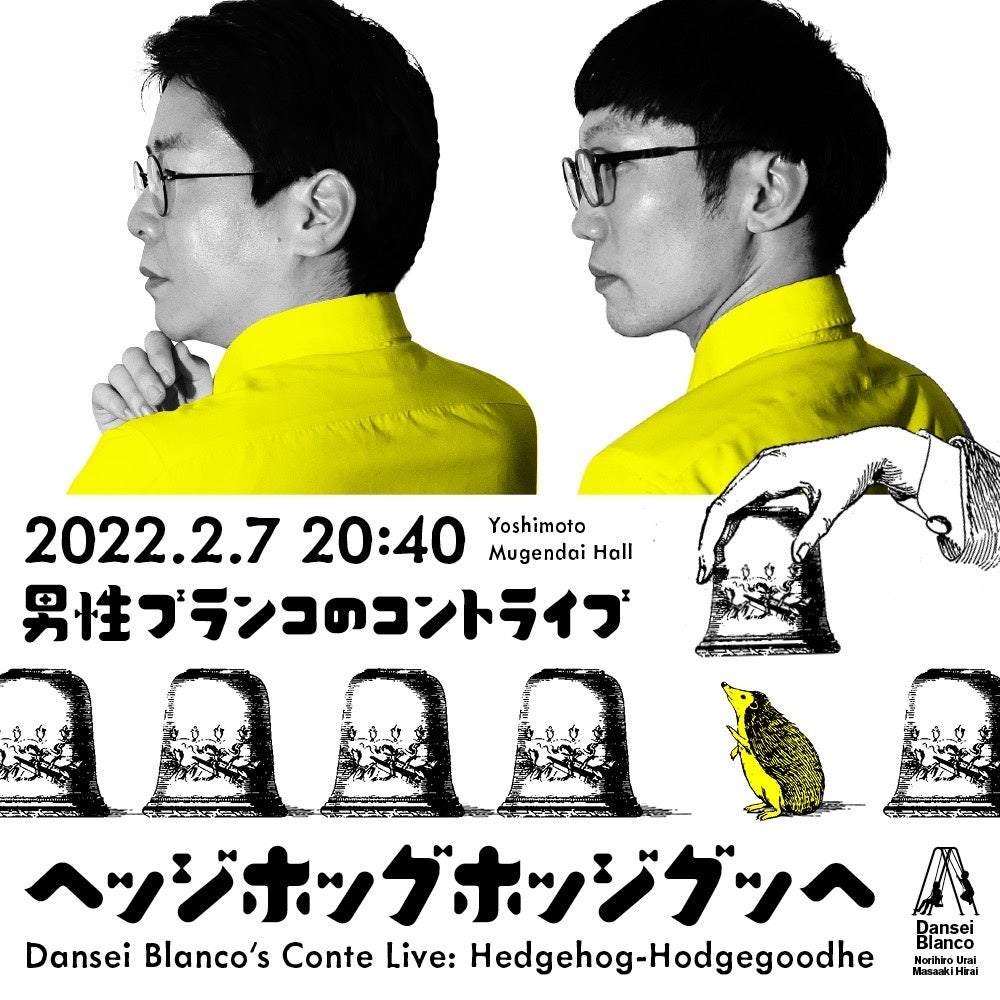 この度、ヨシモト∞ホール(東京都渋谷区宇田川町31-2 渋谷ビーム内)は、男性ブランコのコントライブ『ヘッジホッグホッジグッヘ』(※)を2022年2月7日(月) に開催いたします。