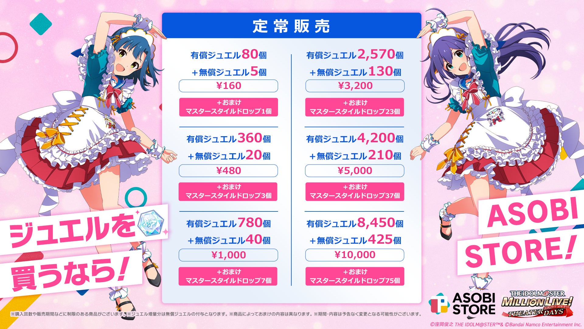 ミリシタのミリオンジュエルがお得に買える!ASOBI STORE内に『WEB STORE』をOPEN!
