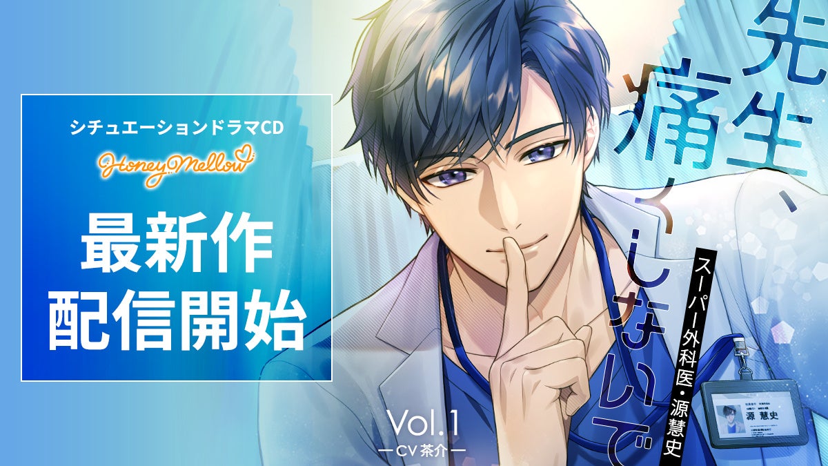 株式会社ボルテージ(本社:東京都渋谷区 代表取締役:津谷 祐司)は、シチュエーションドラマCDレーベル「Honey Mellow」の新シリーズ「先生、痛くしないで Vol.1 ~スーパー外科医・源慧史~」 (CV.茶介) のダウンロード配信を9月29日(金)より開始したことをお知らせいたします。