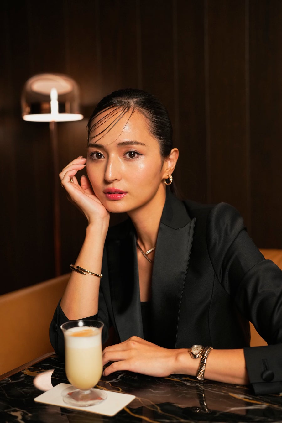 ブルガリ ホテル 東京の最上階に位置する「ブルガリ バー」にて2023年9月21日(木)、世界のトップバーテンダーを迎えたカクテルイベント「Symposia (シンポジア)」が開催され、モデルの山賀琴子さんが、ブルガリのジュエリーやウォッチ、バッグとともにイベントに輝きを添えました。