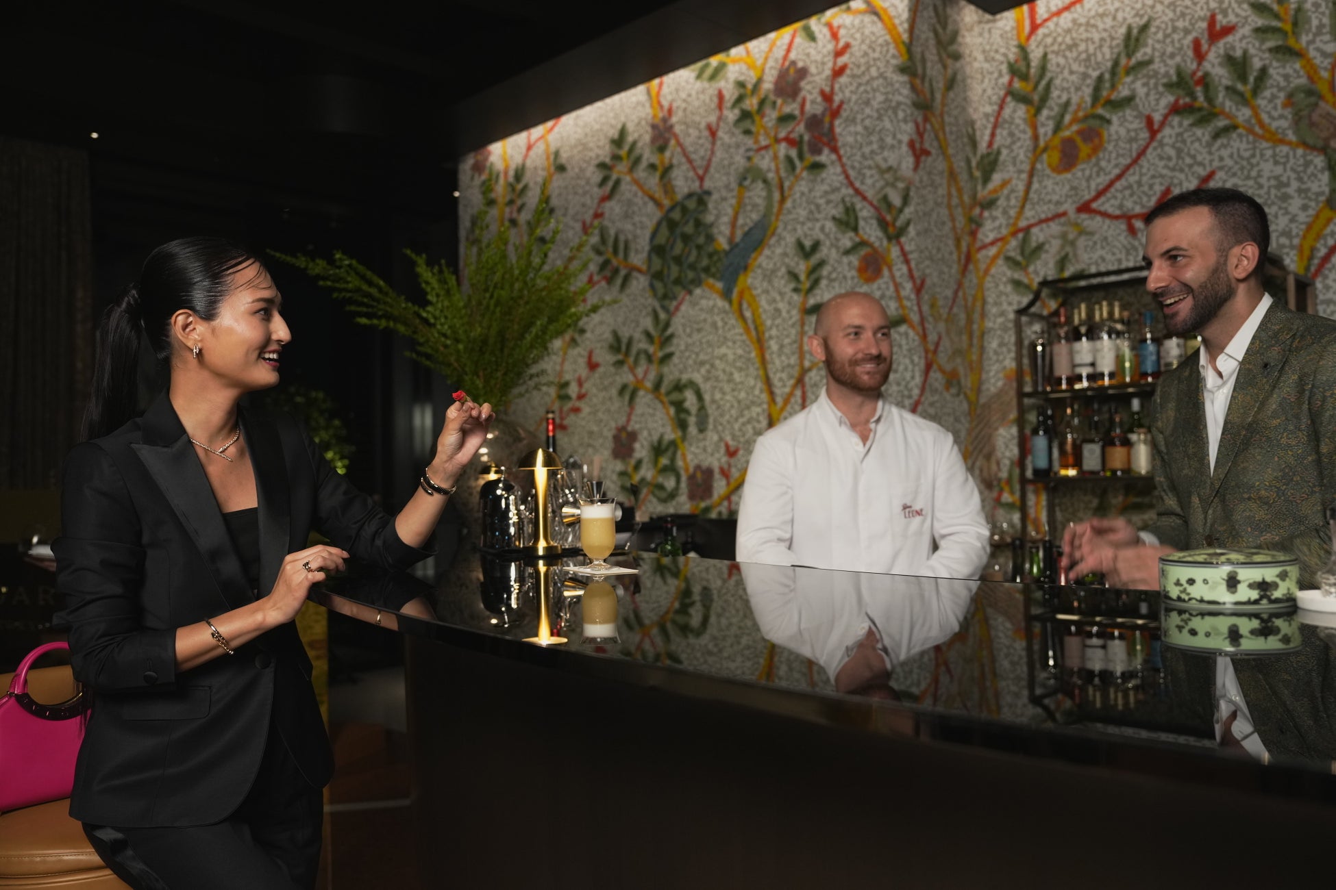 2023年4月のオープン以降、東京の新たなデスティネーションとして高い注目を集めている「ブルガリ バー」のなかでも、特にアイコニックな美しいモザイク画を背景に、香港の「バー・レオーネ」の創業者であるロレンツォ・アンティノーリ氏と「ブルガリ バー」バー マネージャーのアンドレア・ミナレッリがイベントのために創作されたオリジナルカクテルを皆様にお楽しみいただきました。