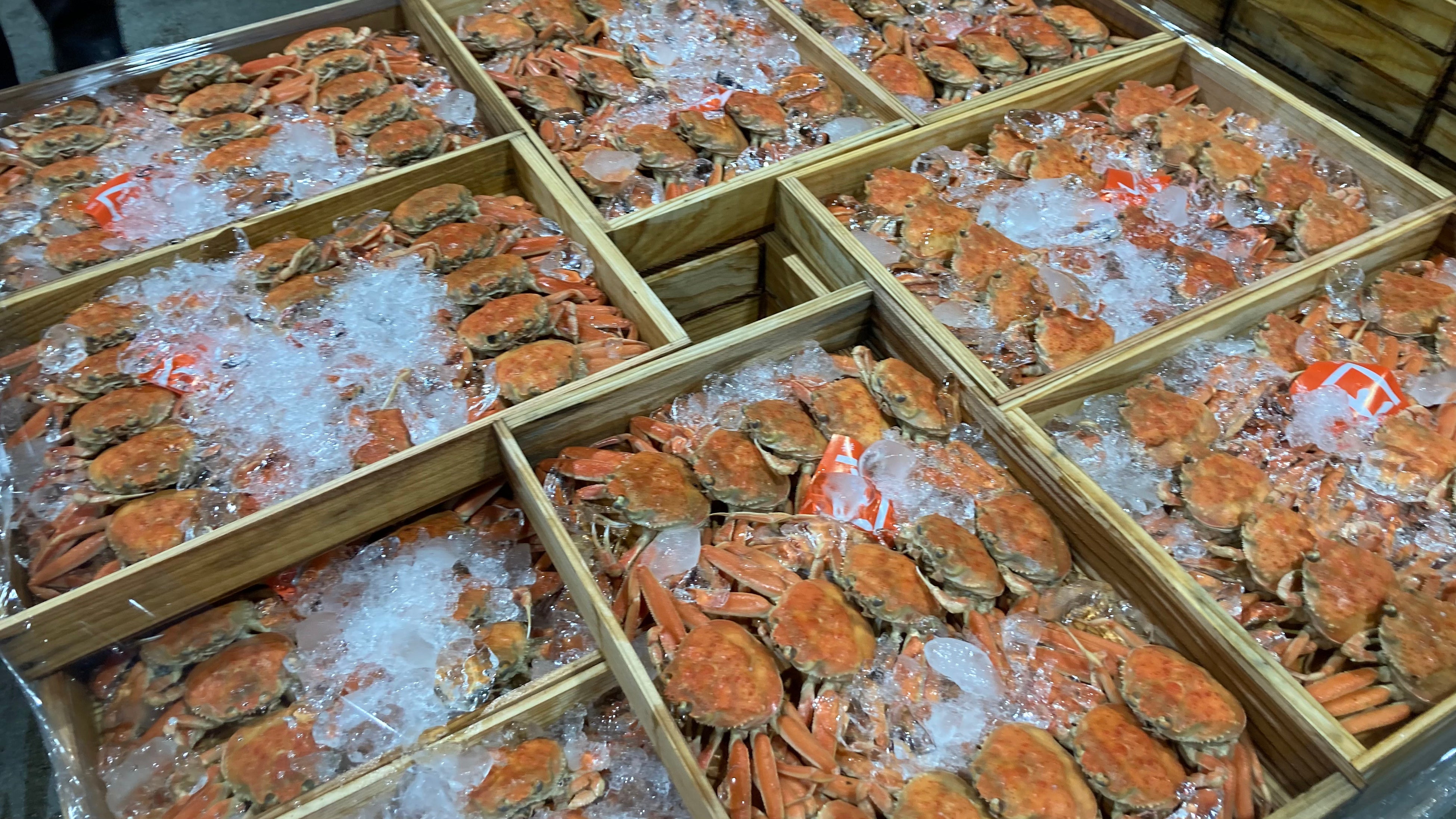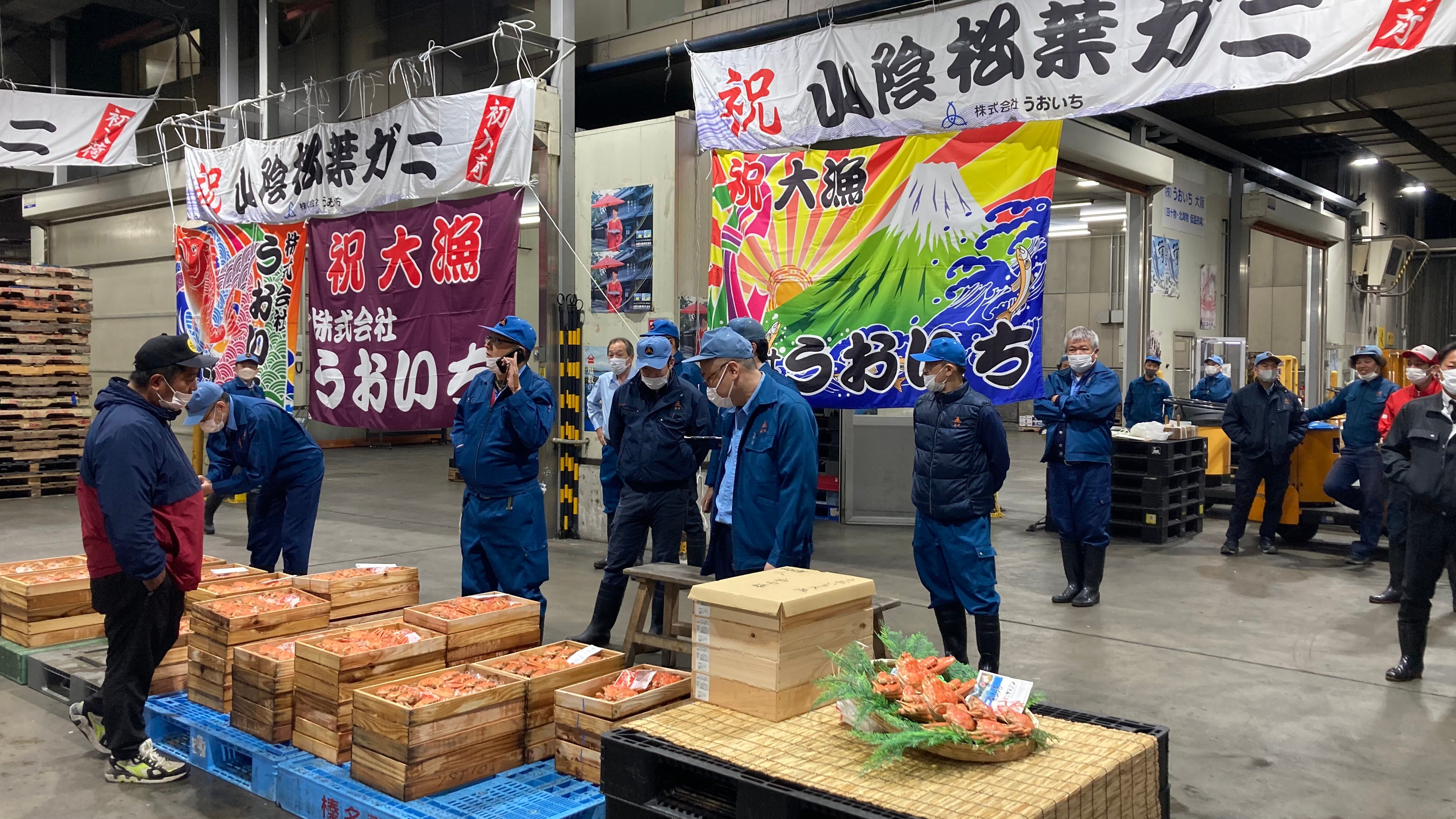 11月6日(日)、冬の味覚の王様「松葉ガニ」の漁が解禁となりました。阪急うめだ本店地下2階鮮魚売場「魚の北辰」では、11月7日(月)大阪市中央卸売市場で競りにかけられた松葉ガニが入荷。