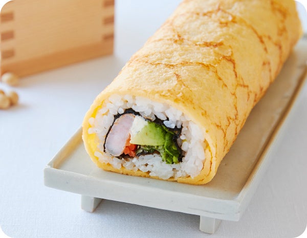 海老、アボカド、クリームチーズ、甘みのあるふんわり卵で包みました。千切りにした生野菜とにんじんのナムルも加え、野菜の食感が楽しめます。