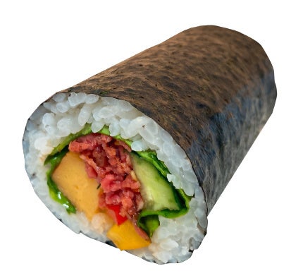 ↑●<ポール・ボキューズ>ごま油香るローストビーフ恵方巻…税込1,296円/*限定数50(肉食&ヘルシー系)