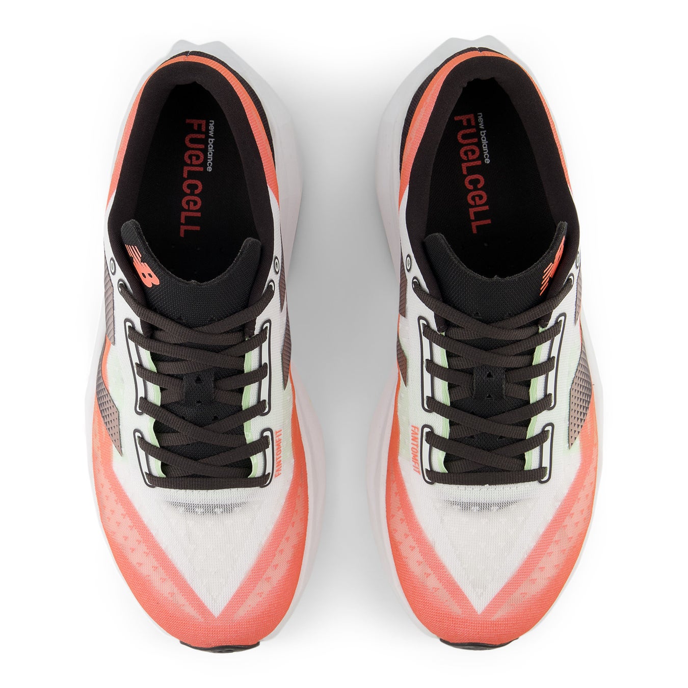 駅伝、フルマラソンで勝利を目指すエリートランナーに向けたトップモデル「FuelCell SuperComp Elite V4」からRising = 陽が昇る / Win = 勝利を掛け合わせた造語を冠した“NB RISWING(ライジング)Pack”が登場。夜明けの太陽をイメージしたレッドに勝利のゴールドをあしらったカラー。Pebax®配合のFuelCellミッドソールと、反発弾性に優れたカーボンプレート、Energy Arcが連動しエネルギーリターンを向上。足とシューズを一体化するFANTOMFITのアッパーがブレを抑制し、反発弾性を効率よくエネルギーに変換します。