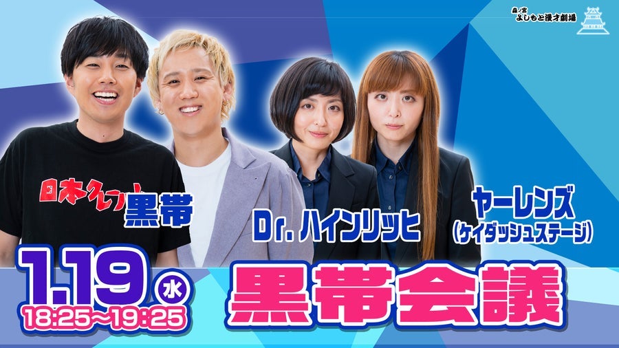 毎月、ゲストを2組迎えて漫才と黒帯とのトークでお楽しみいただけます。