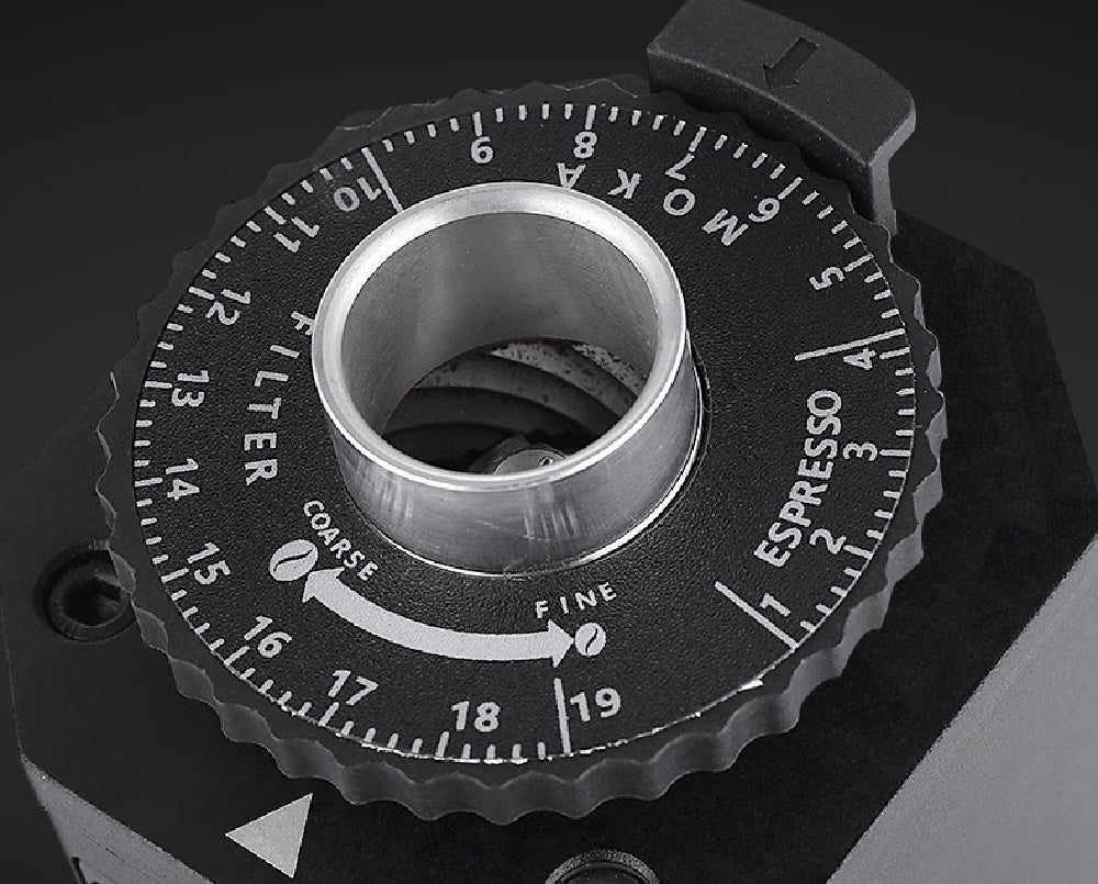 - 19段階の選べる設定で、エスプレッソからドリップ用の豆挽きを