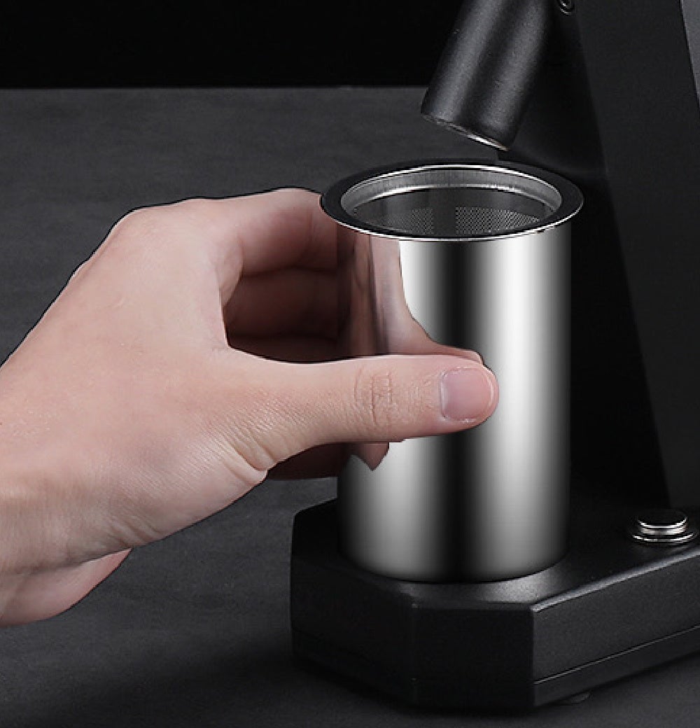 GeeTastyの小型でスペースを取らない本体は、安定して耐久性があるように金属フレームを内蔵しており、90mmの付属カップをマグネットで動かないように設置できます。