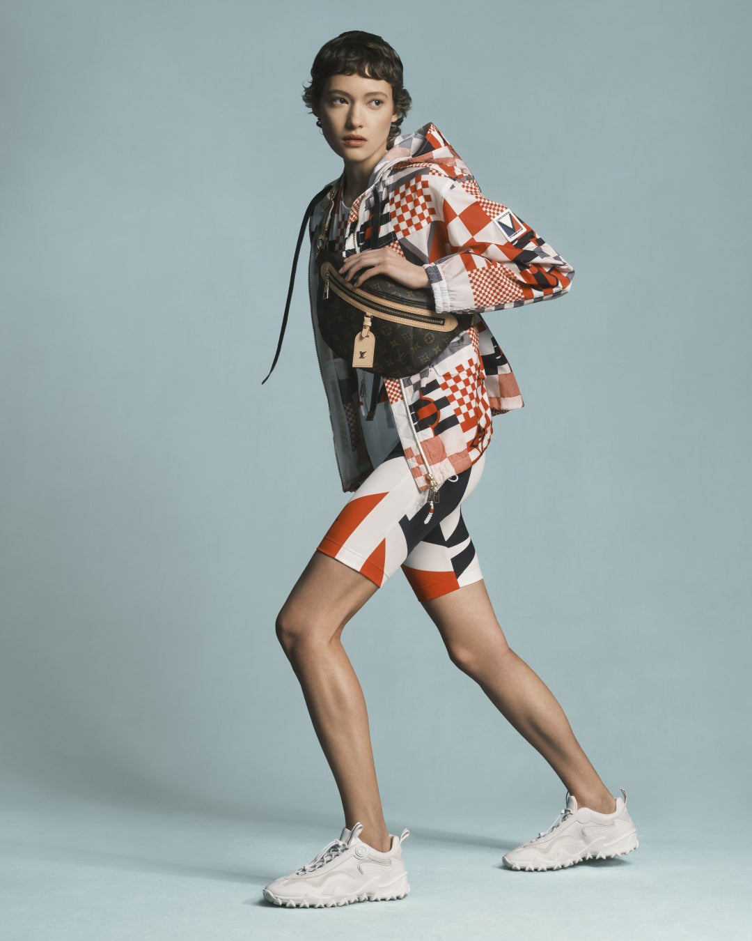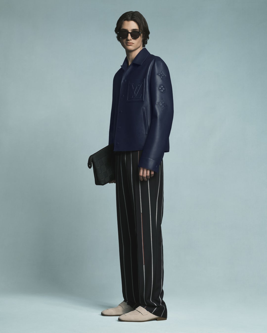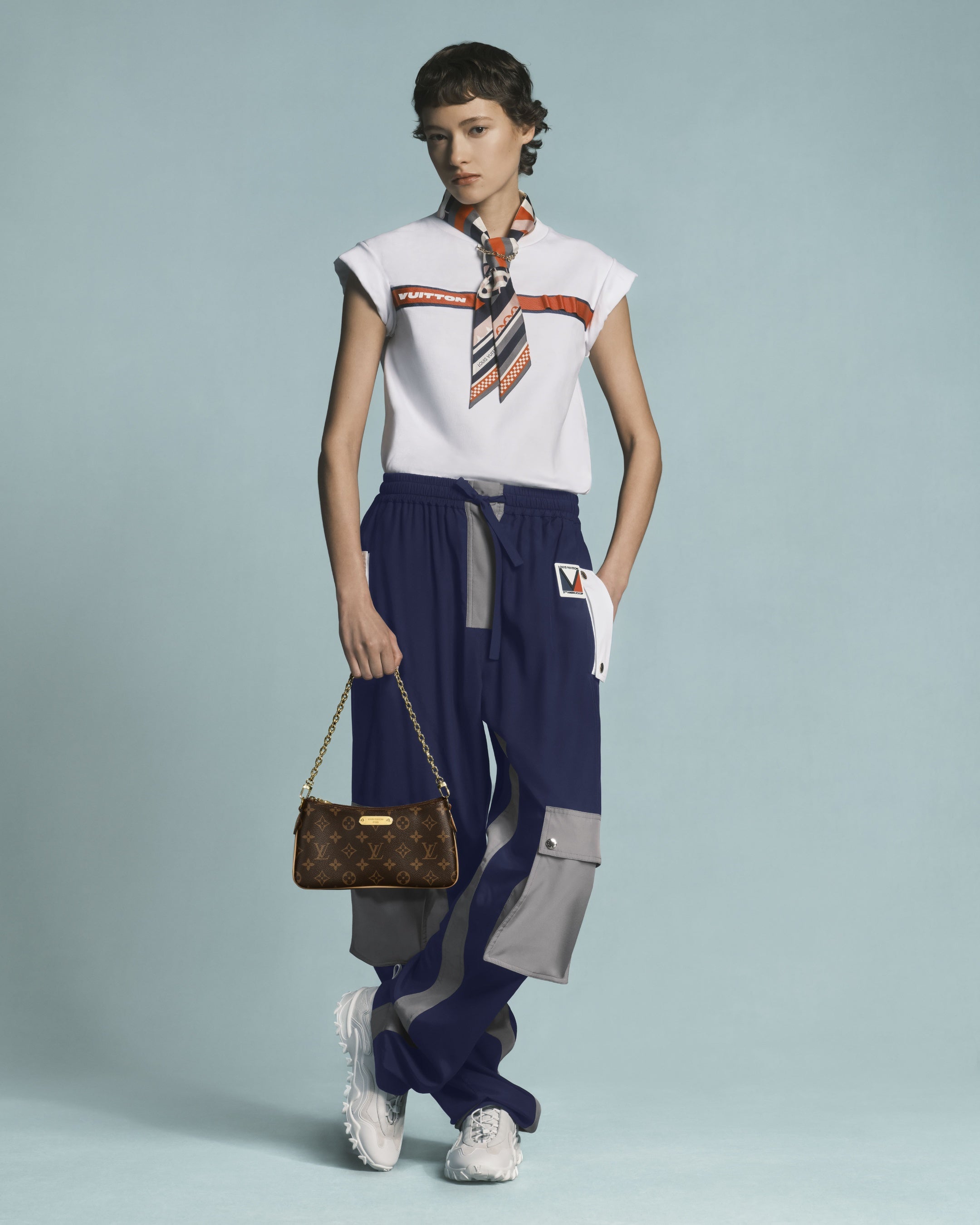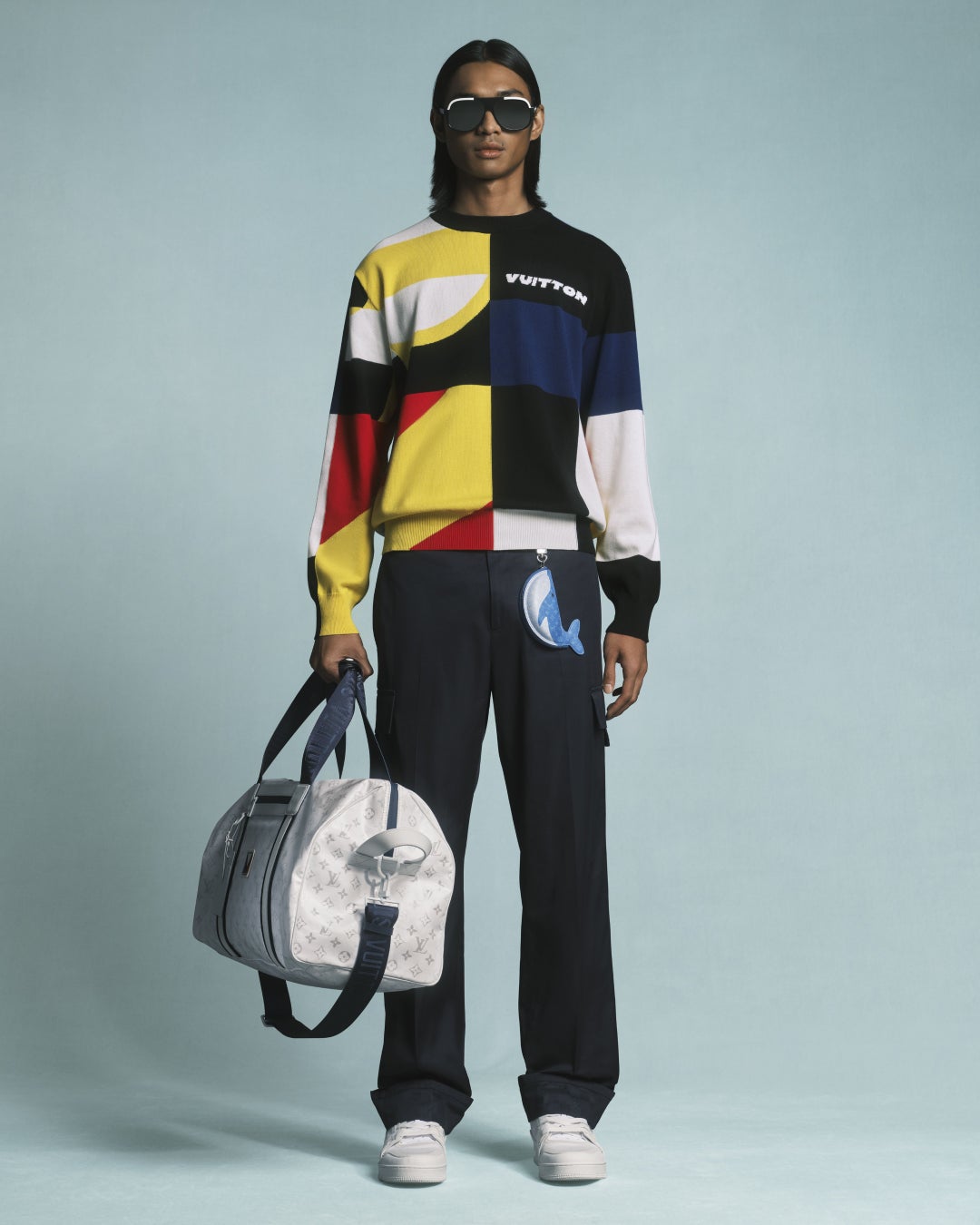 本大会を記念して、ルイ·ヴィトンでは、世界最高峰のセーリングレガッタの感動とエネルギーを余すところなく表現したメンズとウィメンズのプレタポルテ、レザーグッズ、アクセサリーを発表。メゾンのエンブレムに大胆なカラーと海をイメージしたディテールを掛け合わせたデザインが特徴の同コレクションは、テクニカルなアイテムが揃う「Riding the Waves(ライディング·ザ·ウェイブズ)」、スポーティなデイウェアライン「A Day on the Deck (ア·デイ·オン·ザ・デック)」、そしてイブニングウェアラインの「Elegant Summer Evening(エレガント·サマー·イブニング)」という3つのテーマで展開。鮮やかでダイナミックなアメリカズカップのロゴは、ガストン-ルイ·ヴィトンが考案したシグネチャーコードである歴史的なグラフィック「V」をレッド、ホワイト、ネイビーのカラーブロックで縁取ったデザインで、コレクション全体に渡り登場するモチーフです。
