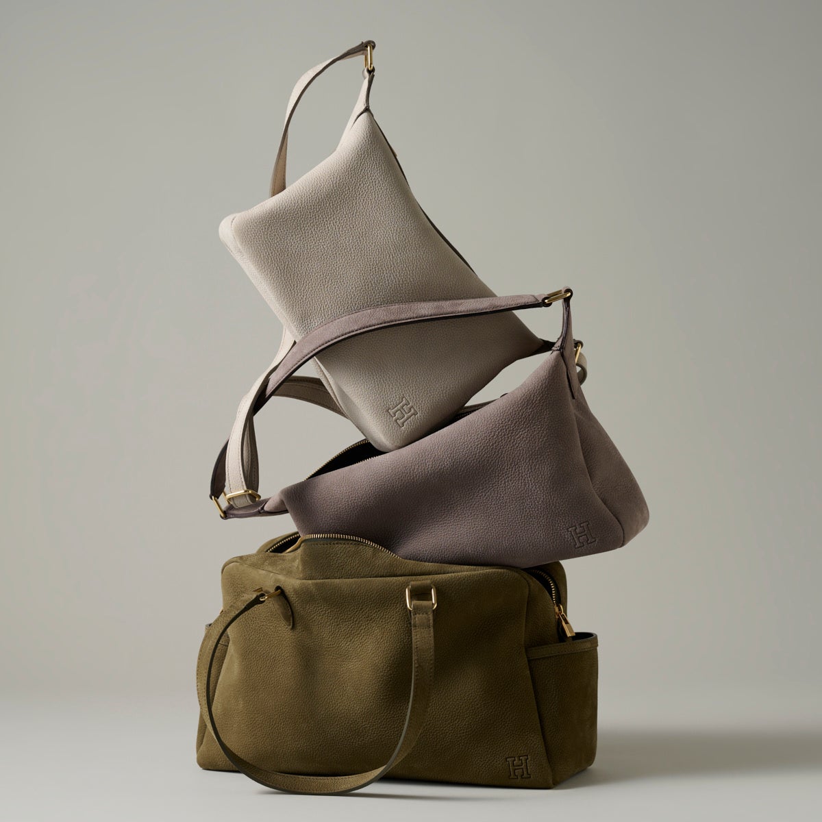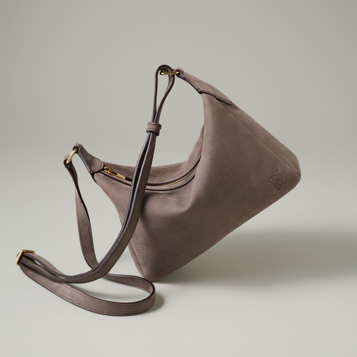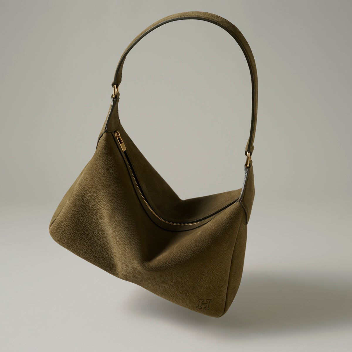 くたっと心地よくたわむフォルムや、思わず触れたくなるシルキーな手触り。新素材×ゴールドメタルが織りなす贅沢な佇まいはHIROFUならでは。