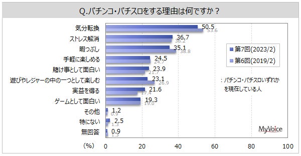 マイボイスコム株式会社(東京都千代田区、代表取締役社長:高井和久)は、7回目となる『パチンコ』に関するインターネット調査を2023年2月1日~5日に実施しました。調査結果をお知らせします。
