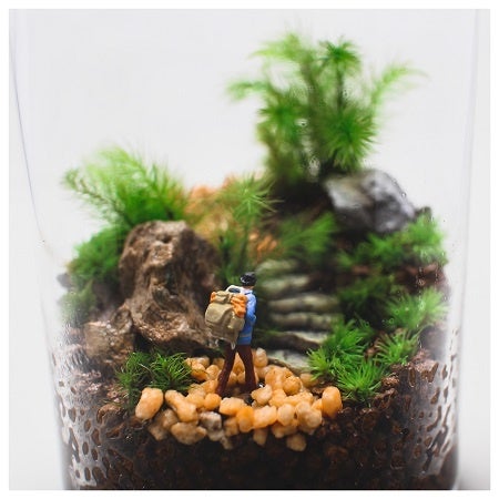 このたびのフェアでは、苔テラリウム作品の展示販売のほか、手作りキット、苔や用土、テラリウム制作に必要な道具などをご用意。関連書籍も多数ご紹介します。苔やテラリウムに興味のある方はもちろんのこと、部屋に植物は欲しいけれど、手入れが面倒、うまく育てられるか不安…といった方にも訴求。気軽に取り入れられるグリーンインテリアとしておすすめします。