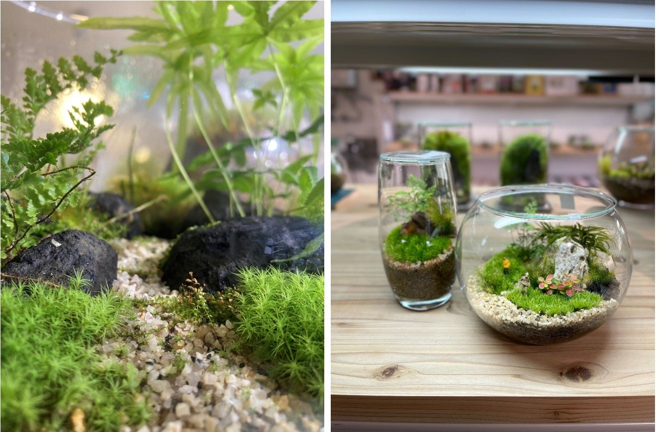 観葉植物などを置きたいけれど、スペースが無かったり、子供がまだ小さくて危なかったり、ペットが居たり。植物を置けたとしても、忙しい毎日で水やりを気にする時間がない、日当たりが良くないといった理由で植物のある暮らしを諦めてしまっていませんか?そんなあなたにおすすめしたいのが"苔のテラリウム"です。植物達が簡単な管理で育つ苔のテラリウムで、心安らぐ緑のある暮らしをご提案。テラリウム作品の制作・販売のほか、各地でワークショップなどを行っています。