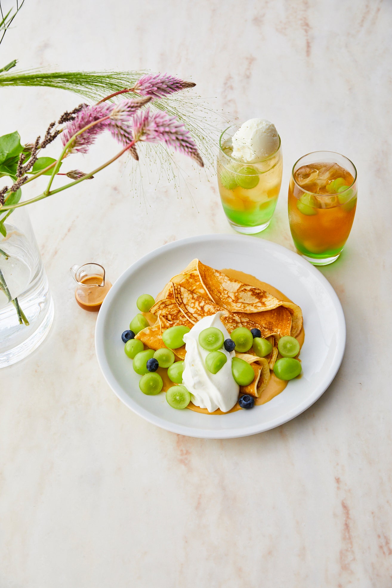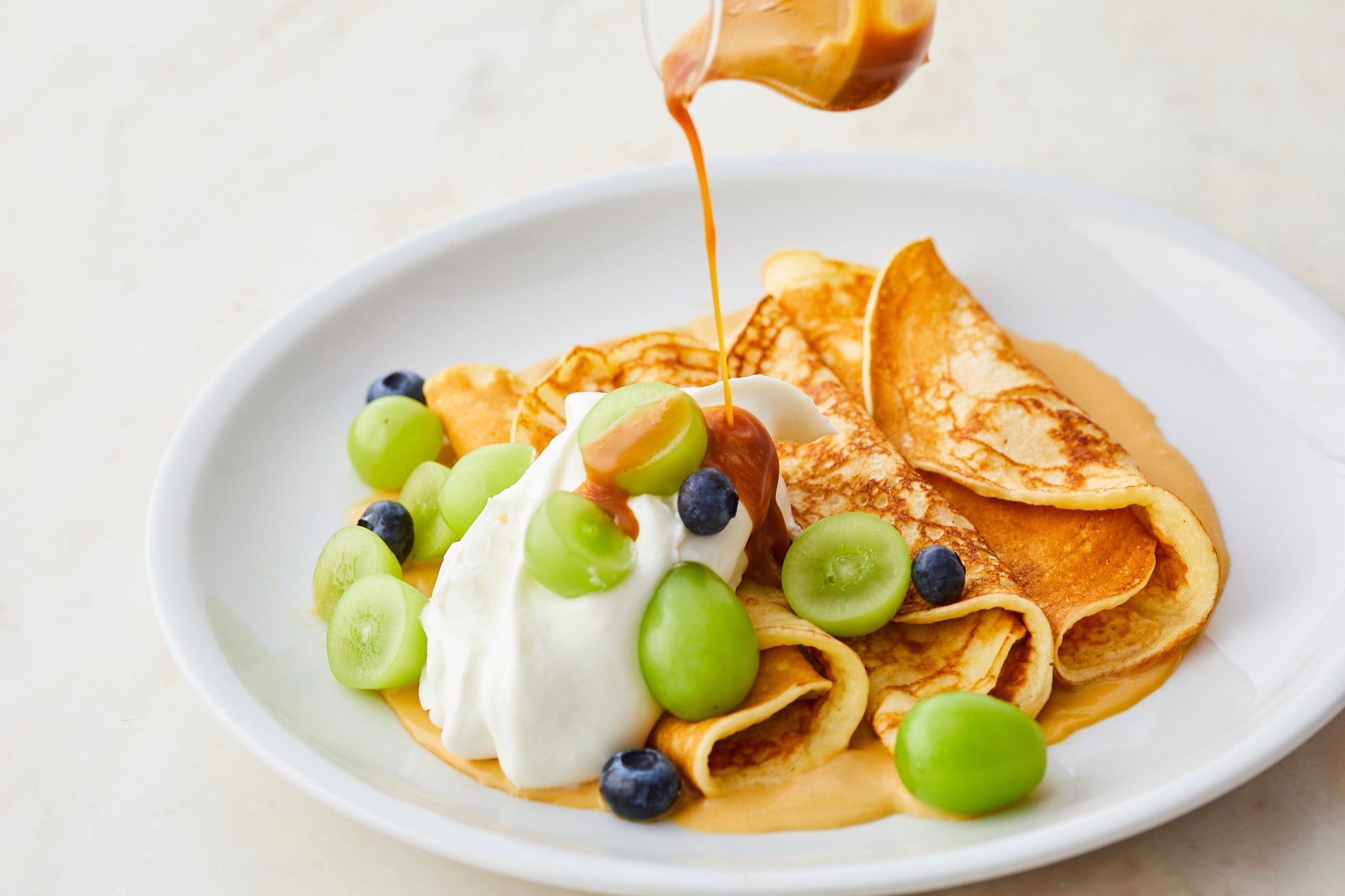 オールタイムパンケーキショップ「J.S. PANCAKE CAFE」より、フルーツ王国・山梨県産シャインマスカットを贅沢に使用したダブルキャラメルパンケーキを9月8日(木)新発売